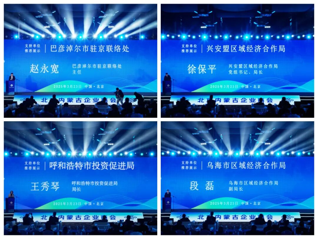 最后,来自内蒙古自治区巴彦淖尔市、兴安盟、呼和浩特市、乌海市的有关部门负责人在大会上推介展示了四个盟市的区位优势、资源优势、产业优势、旅游优势,引起了与会者的热烈关注,带来可能的投资效应。