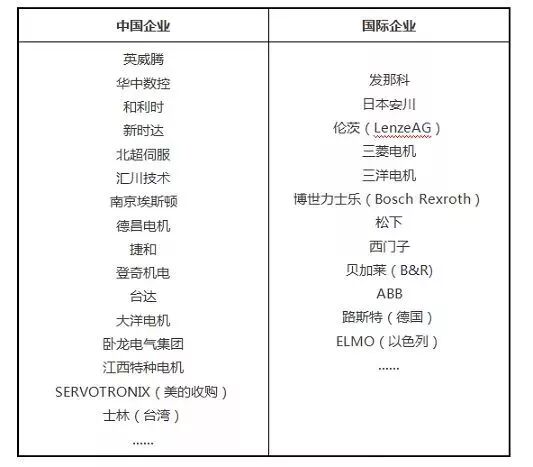 3、机器人伺服电机的部分企业