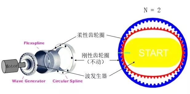 谐波齿轮减速器是利用行星齿轮传动原理发展起来的一种新型减速器,由波发生器、柔轮和刚轮组成,依靠波发生器使柔轮产生可控弹性变形,并靠柔轮与刚轮啮合来传递运动和动力。