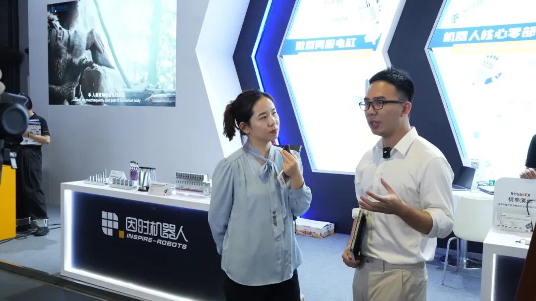在展台上,因时机器人精心打造了多个互动演示区,既具科技感又不失趣味,包涵灵巧手与人手猜拳、FTP灵巧手触觉演示以及力量演示、智能闭环涂布模头应用演示、微型伺服电缸精度演示以及力控演示等多种方案,全方位展示核心技术以及创新应用,成为展会的亮点之一。