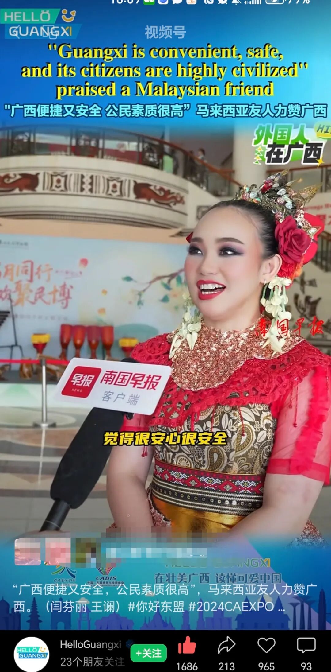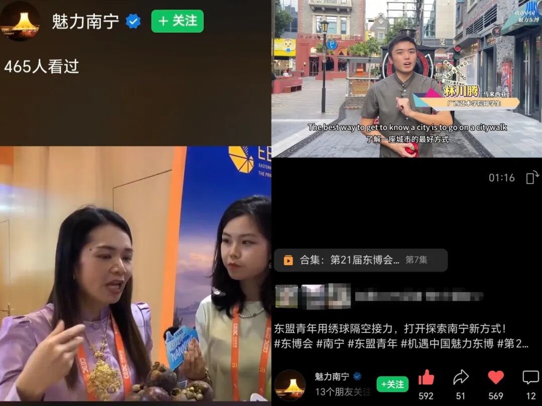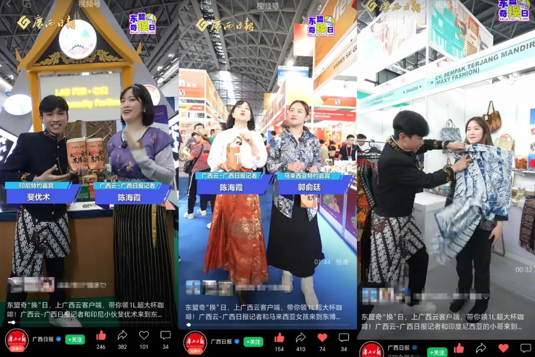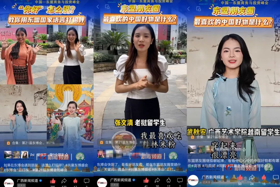 广西日报—广西云视频号播出我校印尼籍学生斐优术、马来西亚教师郭俞廷探班东博会东盟展馆的经历