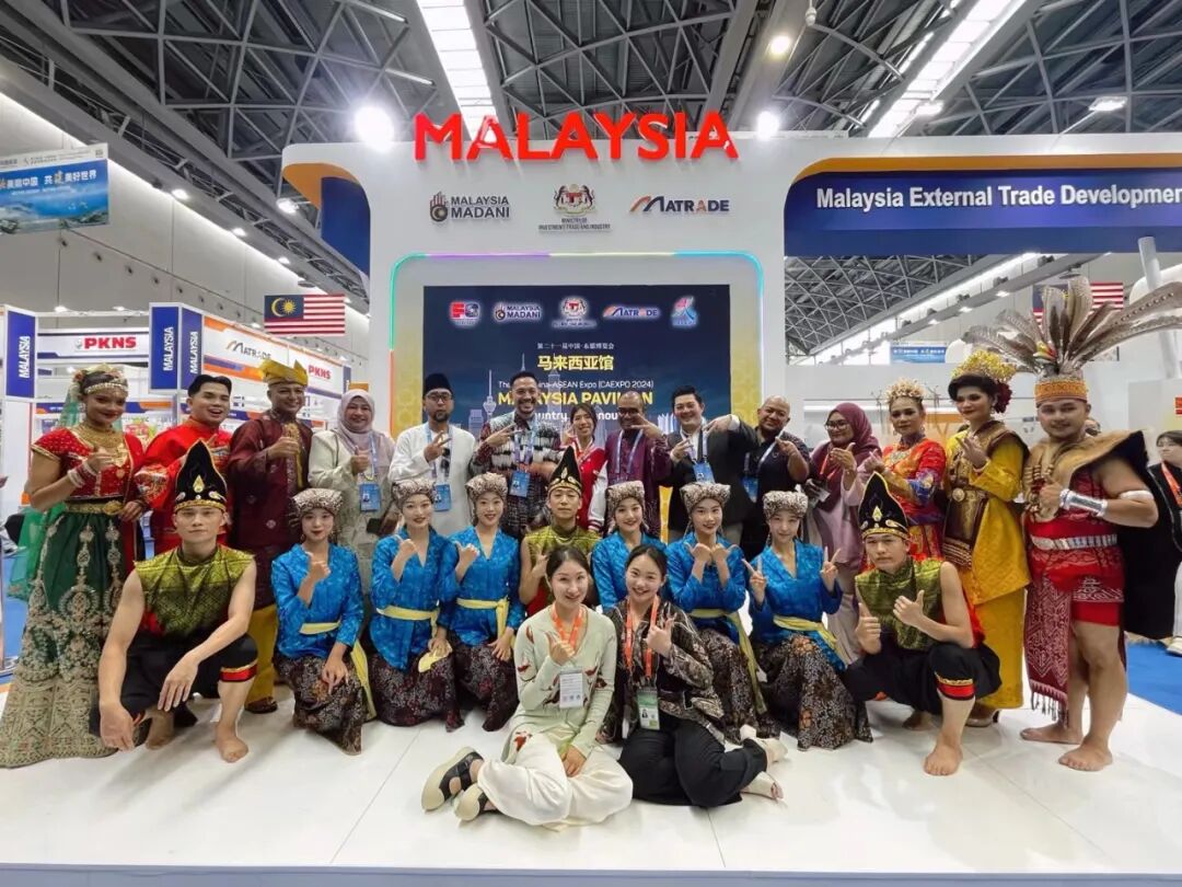 我校马来西亚教师郭俞廷(前排右一)受邀带队参加在东博会马来西亚馆的展演