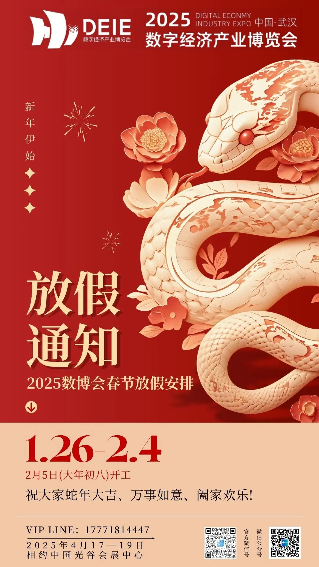 2025中国(武汉)数字经济产业博览会组委会春节放假时间:2025年1月26日-2月4日。2025年2月5日恢复正常工作。