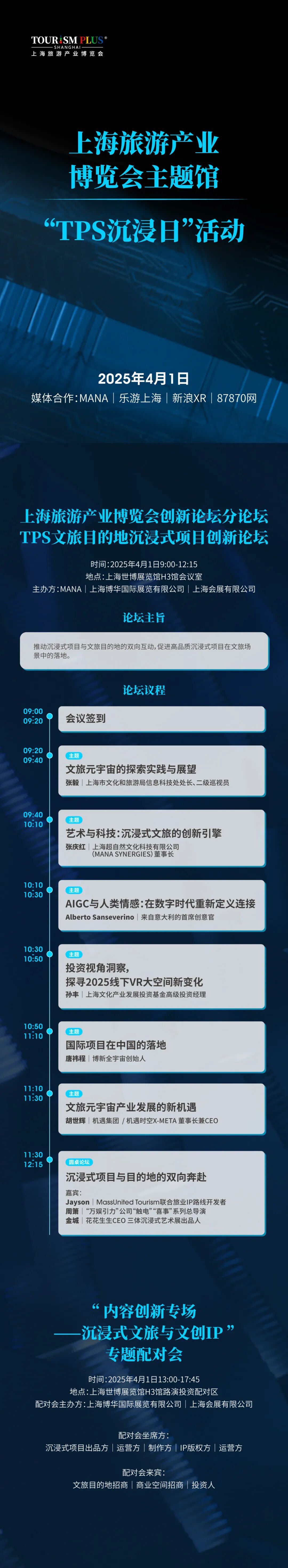 为了促进沉浸产业与文旅产业的融合发展,促进文旅景区景点、商业购物中心引进沉浸式文旅项目,尤其是近期蓬勃发展的LBE大空间项目,主题馆将4月1日特设为“TPS沉浸日”,通过论坛、投资配对会、首发路演、特展等形式,向文旅产业推介优质沉浸式项目。