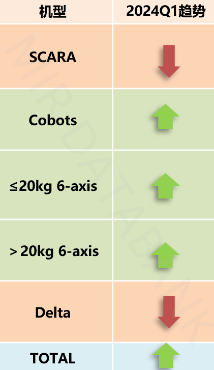 1、SCARA:尽管电子行业复苏,但锂电、光伏处在去库存阶段,短期内仍面临较大压力。