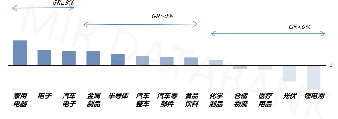 而锂电、光伏行业因为之前热度较高,现在处在产能过剩高库存的时期,呈现下滑态势。