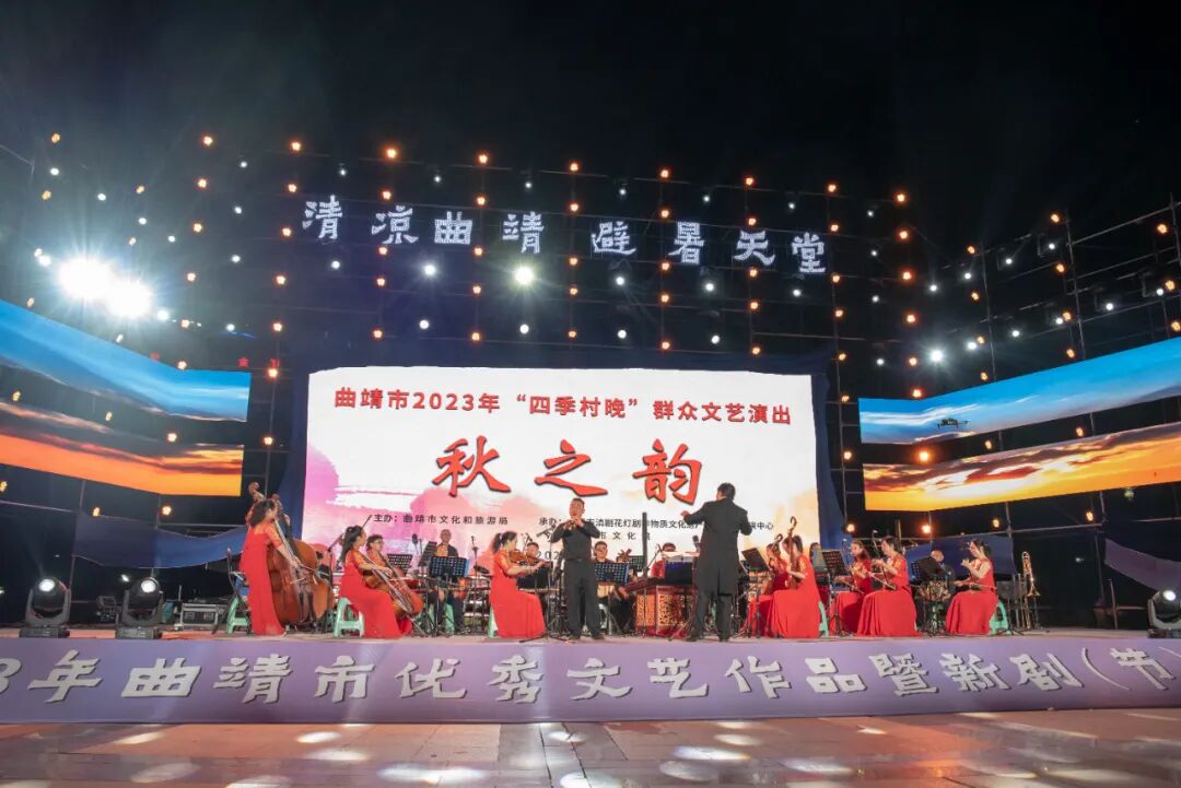 2023,圆满完成罗平花海马拉松比赛文艺演出、沾益首届乡村音乐节民乐专场演出、马龙樱花节文艺演出、中国旅游日文艺演出、“世界环境日”文艺演出、“非遗日”演出、“浦贝杯”中国广场舞大赛、“避暑天堂·清凉曲靖”文艺演出、“禁毒日”宣传演出、市总工会“凝心铸魂跟党走 团结奋斗新征程”送文化下基层演出活动、市委统战部主办的“七一”晚会、市直机关工委运动会开幕式、市人大常委会主办的“八一晚会”、市纪委“清风秋月”廉政晚会、中国国际旅游交易会、南博会演出、市委政法委2023年普法强基主题巡演、曲靖市沾益区2024年“珠江源之声”新年音乐会、2024年迎新音乐会、“麒麟献瑞 情暖珠源”麒麟区2024年元旦跨年晚会等。