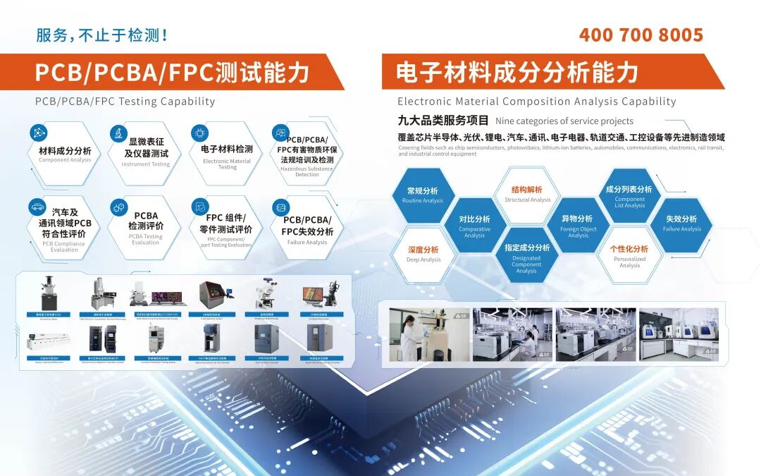 微谱电子通讯事业部,自成立以来,一直致力于为PCB研发创新、质量升级、工艺改善、产品认证以及贸易等领域,提供显微结构分析、电性能分析、热性能分析、无损结构分析、物理性能检测、可靠性试验等专业、可靠的PCB技术服务,并为客户提供技术咨询。我们的客户遍布手机终端、5G通讯、电子电器、汽车、航空航天、新能源、新材料等行业,微谱用专业的技术服务赢得了他们的信任。