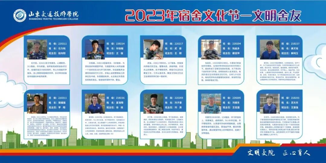 为推进宿舍文化建设,增强宿舍成员凝聚力,营造积极向上的宿舍文化氛围。智能制造学院根据学校统一安排,组织开展2023年宿舍文化节系列活动。经过选拔推荐、综合评定等环节,评选出优秀宿舍舍长、优秀内务标兵、文明舍友、文明作品、三星级”宿舍、“四星级”宿舍、五星级”宿舍等优秀学生、优秀作品、优秀宿舍。