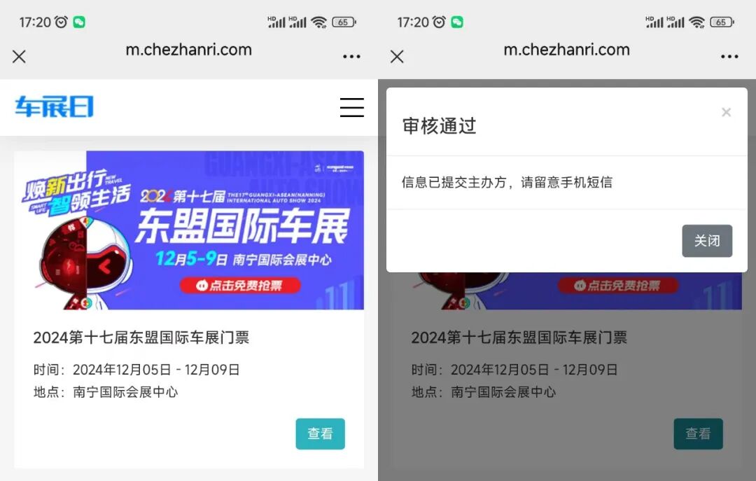 找到开头为【车展日】的短信,点击短信里面的链接,即可进入您的门票页面,点击查看即可显示门票审核状态。