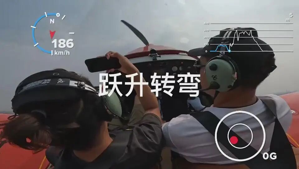 爬升:飞行员操作飞机在以较大的速度低空通场后,在跑刀头快速拉起飞机抬头,整个人会被压到座位上,突然的运动状态改变,也会要人本人的紧张甚至尖叫!