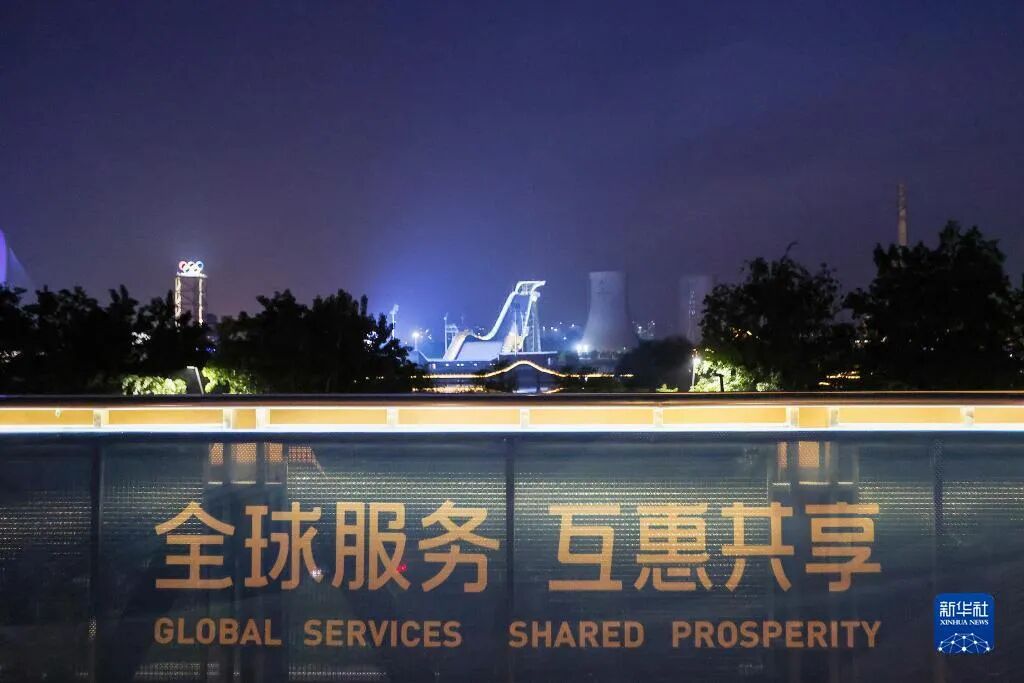 ▲ 这是8月29日在服贸会媒体探营活动中拍摄的首钢园区夜景。新华社记者 郝昭 摄