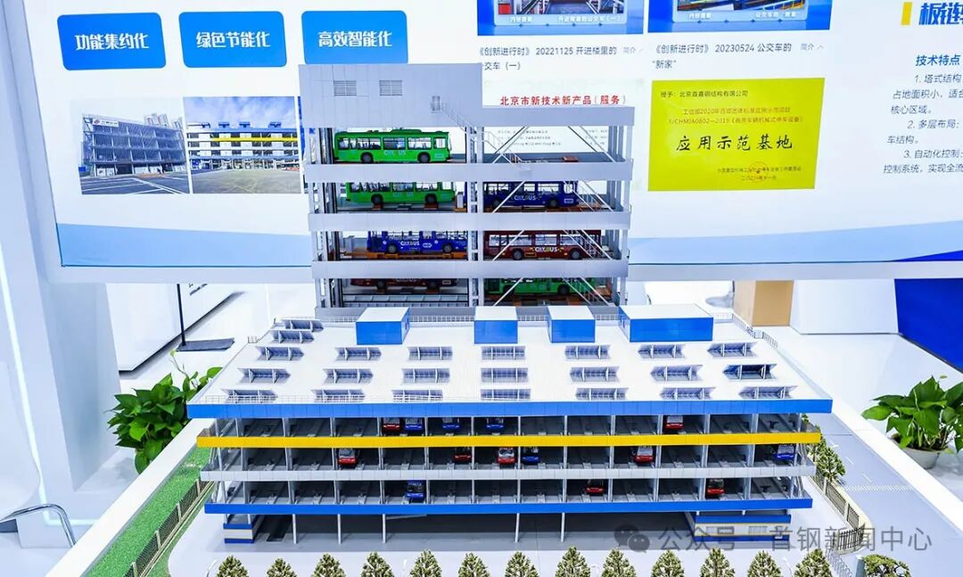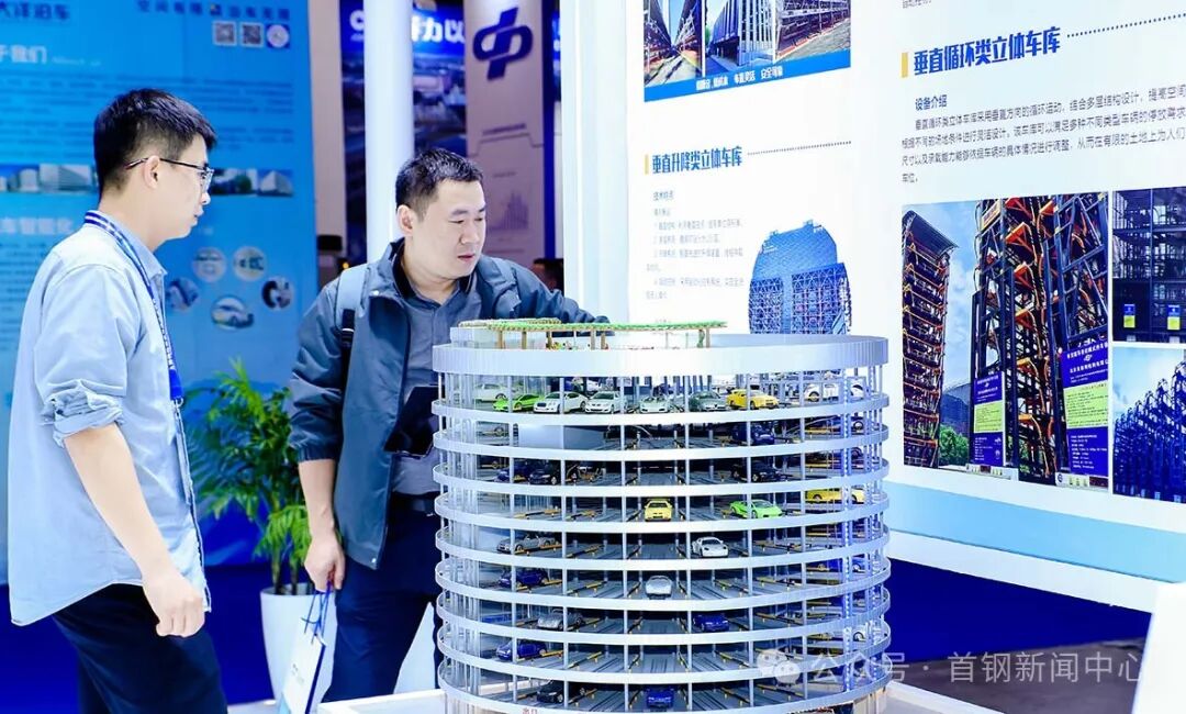首钢城运展台以“让城市因我们更美好、更便捷、更宜居”为设计理念,通过展板、场景沙盘、产品模型、视频体验等多种形式,展示了企业产品和品牌形象。展台中央,精美的停车服务场景沙盘、公交立体停车楼模型、智能充电移动小车、智慧灯杆实物等,一系列产品展现出近年来首钢城运立体车库服务于医院、社区、园区、地铁等区域,缓解“停车难”的经典案例。