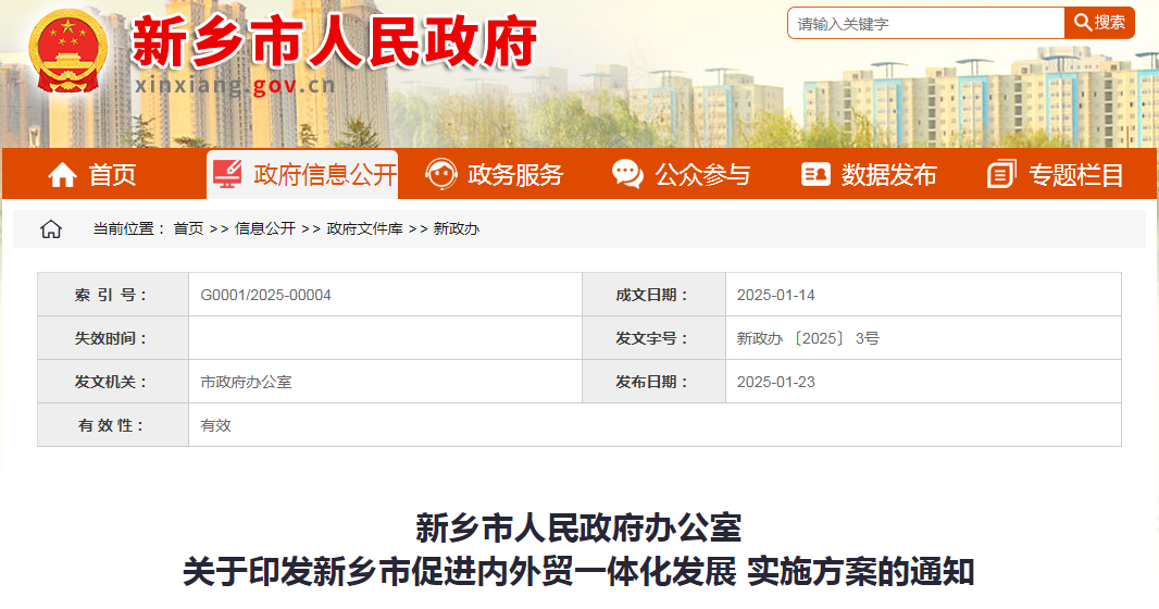 来源:新乡市人民政府网站 (如有侵权请联系删除)