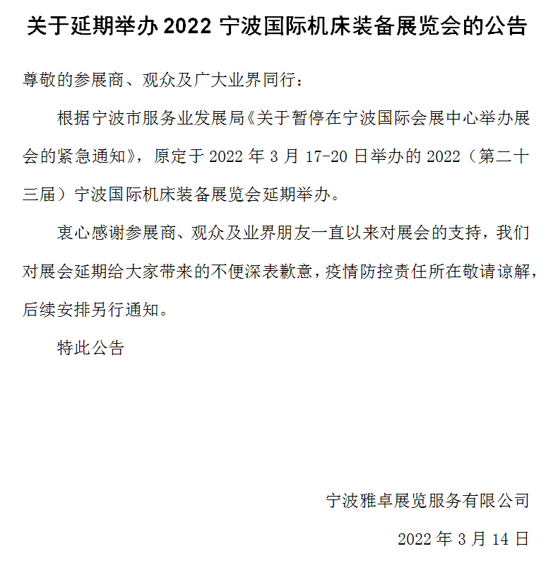 宁波国际机床装备展 2022-03-14