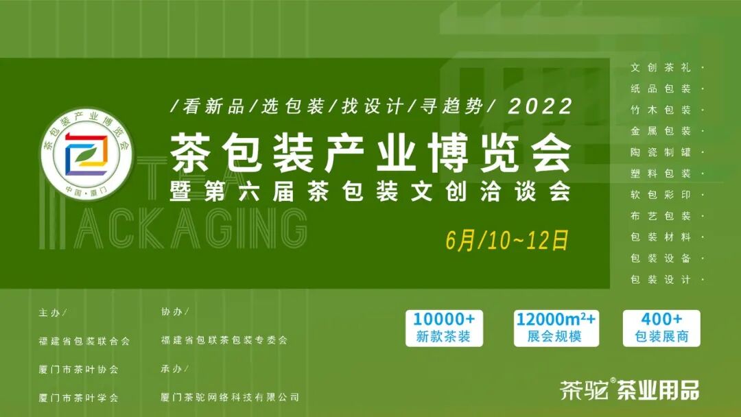 同时配套举办“院校设计作品展”、“第六届茶包装文创洽谈会”、“福建包装之星”十佳评选等活动,将为全国采购客商呈现更丰富的展品及活动内容。