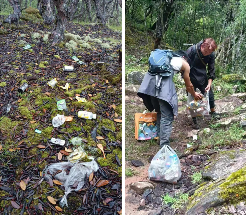 监测队员捡拾野外垃圾并带下山  沪ICP备16029818号-3杨明、杨青云