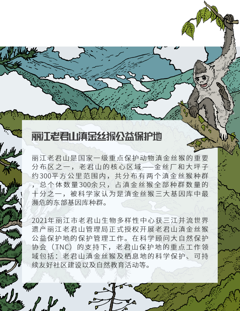 7月,老君山自然观察手册进入内容编写阶段,保护地团队协助合作方新生态确定了5条路线观察点和相关资料收集和整理、确定了手绘风格,8月底,新生态团队基本完成手册的文字内容,为补充雪门坎和滇金丝猴巡护路线的位点观察信息和素材,9月上旬新生态团队到保护地进行实地考察。