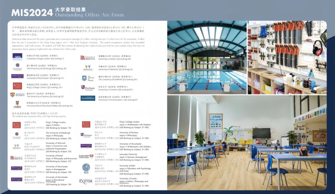✅ 升学成绩:2024届85%的毕业生被世界前15强大学录取;100%的毕业生被世界前80强大学录取(包含香港科技大学等相关头部名校,不包含1位申请国内大学的学生)