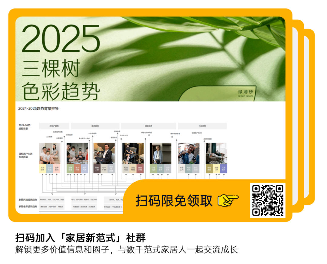报告中提出的三大家居趋势——再创纪、新趣相、优化论,共同描绘了一个以可持续性、个性化和智能化为核心的未来家居生活蓝图。这些趋势不仅塑造了产品设计和室内设计的未来方向,而且深刻影响着我们与环境、社会和文化的互动。在未来的家居生活中,这些趋势的融合与发展,将引领我们进入一个更加智能、环保和人性化的居住新时代。(滑动查阅更多)