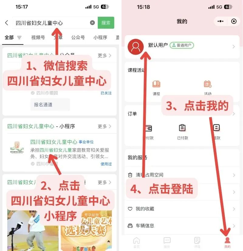 通过“四川省妇女儿童中心”官方微信小程序进行报名操作,并微信支付缴费,完成报名。