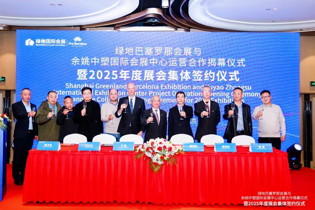 1月16日,绿地巴塞罗那会展与余姚中塑国际会展中心运营合作揭幕仪式暨余姚中塑国际会展中心2025年度展会集体签约仪式在上海圆满举行。(来源:第一会展)