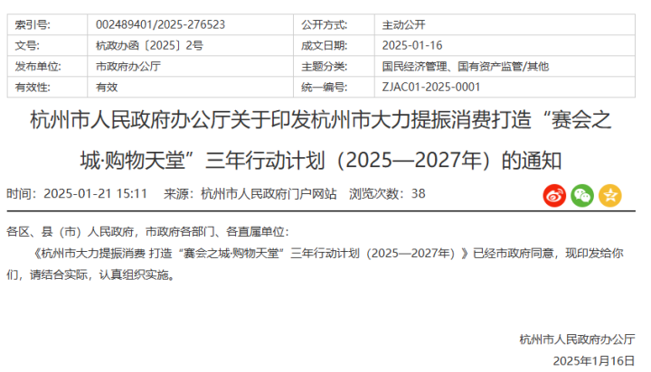 为充分激发消费市场活力,完善提振消费长效机制,近日,市政府网站发布《杭州市大力提振消费打造“赛会之城·购物天堂”三年行动计划(2025-2027年)》。《行动计划》明确了六大目标,实施八大行动,推出38项具体举措,推动促消费扩内需和打造“赛会之城·购物天堂”。(来源于:中经网会展)