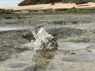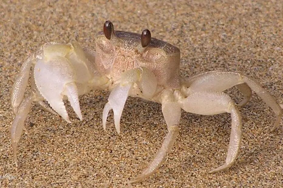 喜欢在沙滩上打洞的沙蟹,有着竖起来的眼睛,是行走速度最快的一类蟹啦~