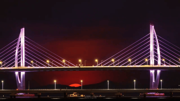 港珠澳大桥宛如一条发着光的海上巨龙,蜿蜒游向大海深处。游轮从大桥底下经过时,瞬间便能感受到它的宏伟和壮观。