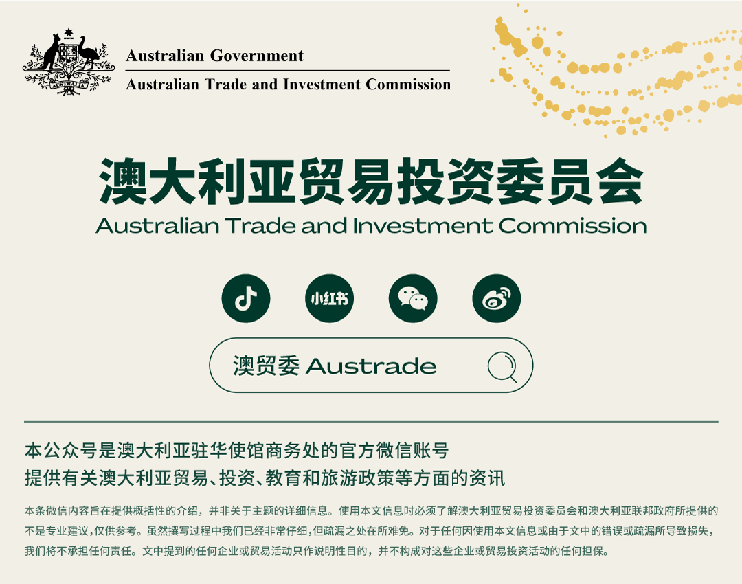 澳贸委欢迎专业观众和买家团莅临澳大利亚品牌馆。您可以进入澳贸委Austrade 微信小程序澳大利亚进博会线上商务展示对接”,提前了解来自澳大利亚各类展品、预约参观澳大利亚馆、预约与澳大利亚展商进行商务对接。
