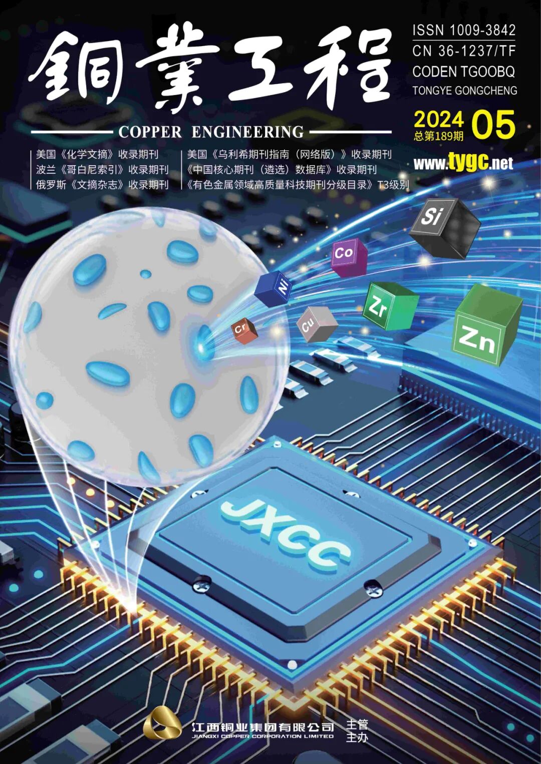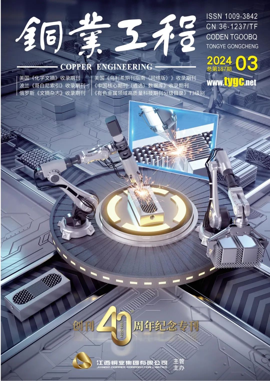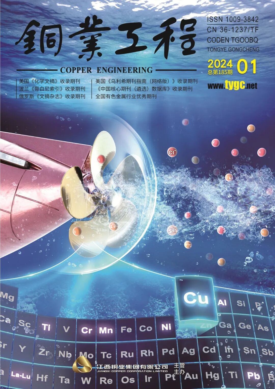《铜业工程》创刊于1984年,由江西铜业集团有限公司主管主办,是我国铜工业领域全面反映铜产业链技术进步和金属材料科技创新的双月刊。中国工程院外籍院士、加拿大工程院院士、加拿大皇家科学院院士徐政和为期刊特约主编。期刊为《有色金属领域高质量科技期刊分级目录(2023)》T3级别,同时被美国《化学文摘》、俄罗斯《文摘杂志》《中国核心期刊(遴选)数据库》《万方数据库》《维普中文科技期刊数据库》等国内外检索数据库平台收录。根据2024年《中国学术期刊影响因子年报》,《铜业工程》复合影响因子和综合影响因子分别为0.882,0.830。主要刊登铜、铅锌、稀有金属、贵金属等有色金属在采选、冶金、加工、环保、分析测试等方面的最新科研成果及应用,以及有色金属领域产业数字化、“双碳”战略推进等研究论文和综述文章。