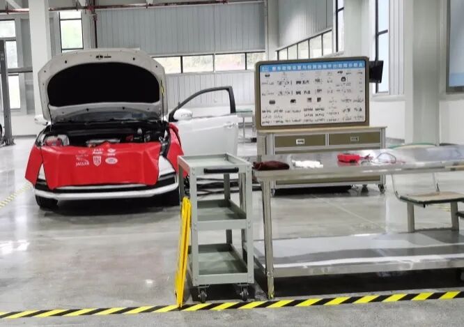 汽车技术实训中心始建于2019年,占地面积超2500平方米,涵盖“整车调试返修实训区”“新能源汽车动力电池实训区”“新能源汽车电驱系统实训区”“智能网联汽车测试装调实训区”等12个实训区“单片机实训室”等2个实训室,拥有比亚迪秦EV汽车(2022年、2023年全国职业院校技能大赛平台)、吉利EV系列汽车、比亚迪秦DM-i汽车、智能小车(2022年四川工匠杯职业技能大赛平台)等实训车辆和智能汽车传感器测试装调平台、动力电池实训平台等先进汽车实训设备,总价值超500万元。实训中心集理实一体化教学、科研、技艺传承、技能竞赛和社会服务于一体,承接各专业理论教学、实践教学、研究所科研、大师工作室技艺传承、技能大赛训练、企业员工培训和院校师资培训等工作。