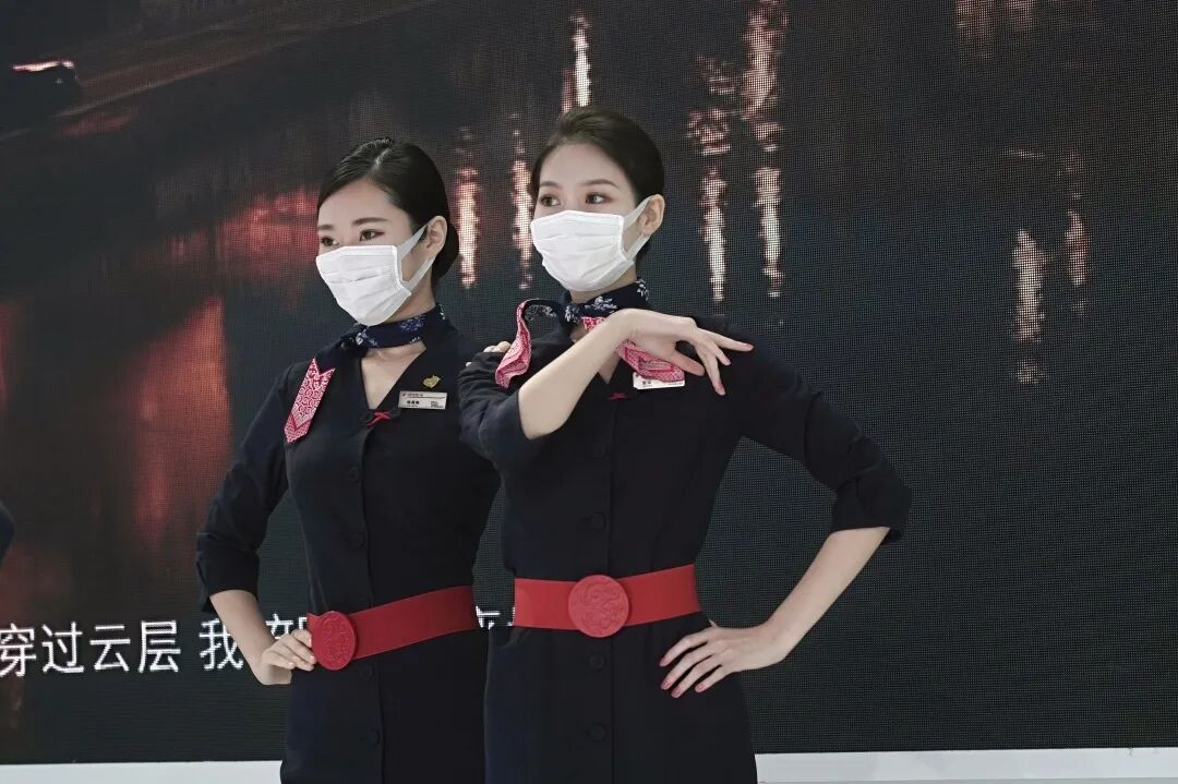 由8名东航客舱空乘表演的特色开幕舞蹈吸引了许多观众的目光,她们将和东航智能机器人“东东”一起,在为期6天的航展期间,为专业人士和普通观众提供现场指示引导和讲解服务。