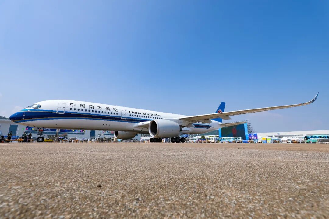 此外,一架来自南航的空客A350飞机在航展上进行静态展示。A350飞机拥有新一代气动设计,机身和机翼采用碳纤维复合材料制造,动力源于罗尔斯-罗伊斯公司生产的先进高效发动机。