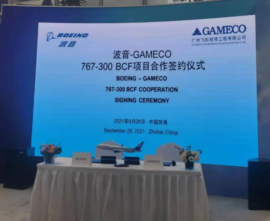 两家公司在珠海举办的中国国际航空航天展览会上举办了签字仪式,宣布将于明年增设两条全新767-300BCF改装生产线,扩展GAMECO的货机改装能力。