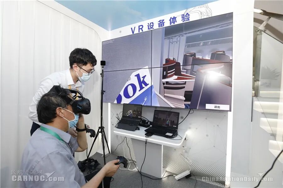 除此之外,C919移动数字飞机展示平台也在本次航展首度“靓”相。它是按照C919飞机客舱实际尺寸1:1真实还原C919大型客机的舱内场景。