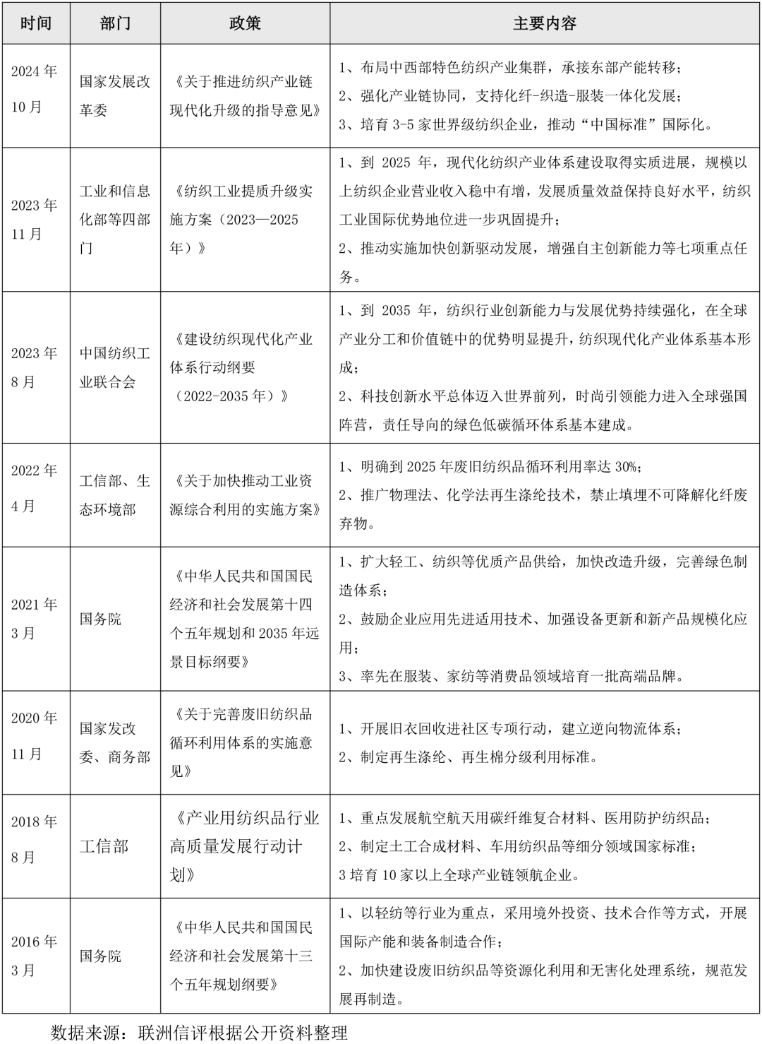 循环经济模式也将得到推广和应用。再生纤维产能持续扩张,低碳园区模式将向全国推广,2025年废旧纺织品循环利用率有望达25-30%。