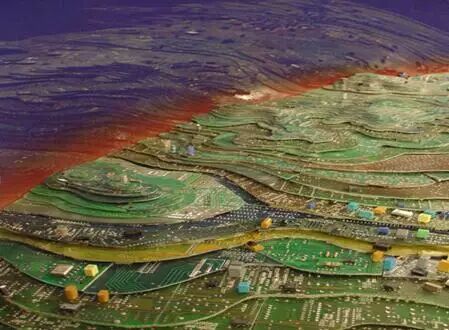 ↓↓Grace Grothaus用电路板创作的海岸轮廓模型