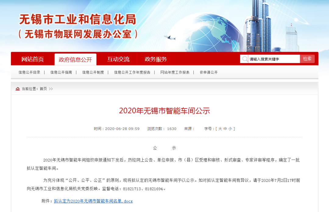 近日,无锡市工业和信息化局公布了2020年无锡市智能制造车间名单,我司高端零部件模具生产智能车间获评无锡市智能车间称号!
