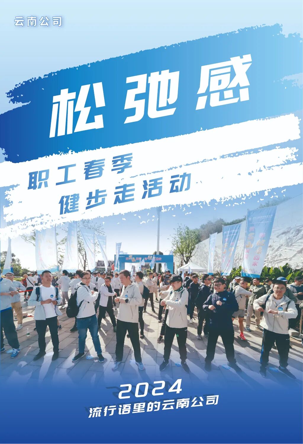 与“班味”相反,“松弛感”则收到广大群众的追捧。今年4月,云南公司组织了“赏西山美景,带健康回家”春季健步走活动,参与人员正在进行热身运动,大家调整呼吸、放松身体,清风吹过旗幡,松弛感瞬间“拉满”。