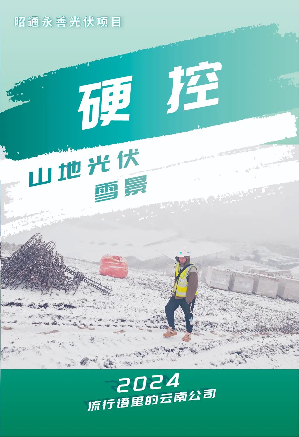 “硬控”一词源于游戏,指某种事物非常吸引人。入冬时节,气温零下5℃、海拔2800m的山间已经大雪纷飞,昭通永善光伏下项目管理人员许荣波正顶着凛冽的寒风前往施工现场,整个大地银装素裹,身后的光伏板也披上了银装,旁观者见状仿佛身临其境,与雪中景“凝固”在一起。