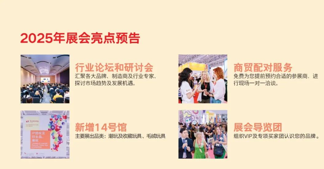 时间:2025年4月7-9日地址:深圳国际会展中心(宝安区)扫码登记 获取门票加开14号馆扩大潮玩面积∆2025年展馆分布图企业出海意愿强烈为外销业务增能扫图中二维码即刻获取门票点击上方 / 关注每日E展订阅号小程序备注:展会信息为网络汇总综合信息编辑,如有侵权,请联系我们第一时间修改删除,谢谢 !!!