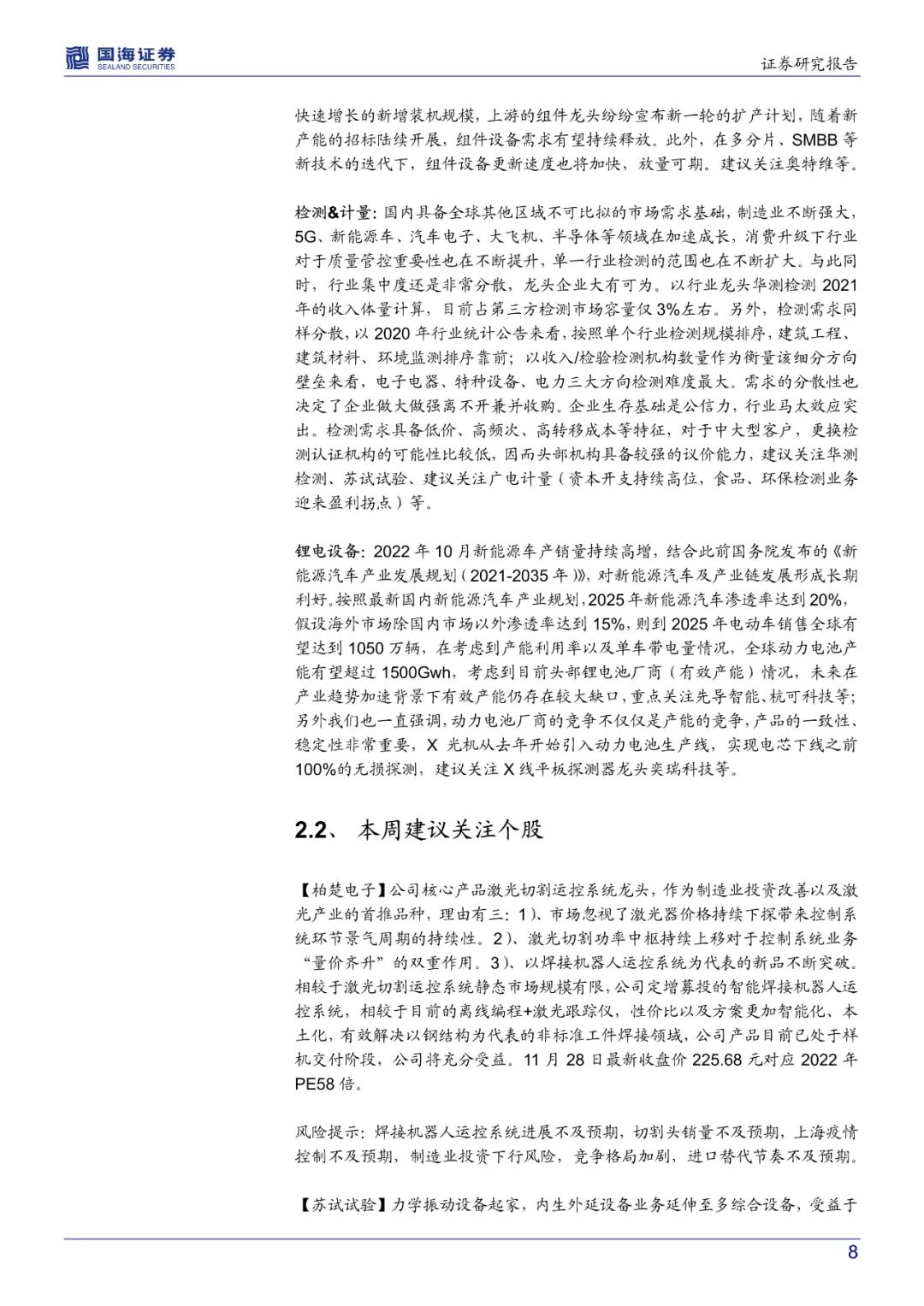 本周SW机械板块下跌1.41%,沪深300下跌0.68%。通用设备仍是市场关注和博弈的焦点,位置低、筹码结构好,低基数下同比数据改善等逻辑支撑本轮通用设备反弹,建议重点关注低估值的叉车、刀具等环节;锂电设备在新能源汽车需求边际放缓的背景下估值持续承压;光伏设备机构持仓相对拥堵,基本面仍无忧,建议等待调整时机。