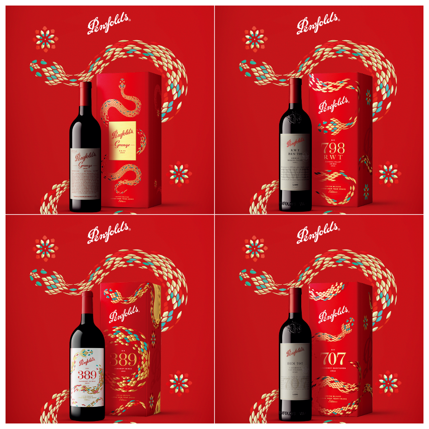 第七届进博会上,奔富带来了全球首发的蛇年限量款礼盒。设计师把东方文化中象征着智慧与神秘的灵蛇元素,巧妙地融入到奔富经典的红色礼盒上。