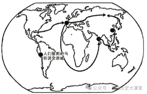 (1)上图是马铃薯主要传播路径示意图,虚线代表1492年哥伦布探险以前,实线代表16世纪以后。识读地图,写出马铃薯全球之旅的起点是哪里?进行了洲际传播的物种不仅有马铃薯,请结合所学再举一例。