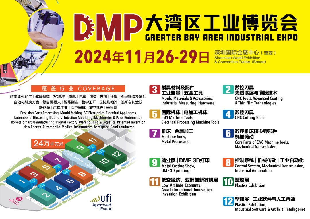 2024DMP大湾区工业博览会(以下简称“DMP工博会”),将于11月26-29日在深圳国际会展中心(深圳宝安)举行!展会规模24万平方米,预计达2200家制造业企业汇聚亮相,现场50+场前瞻会议论坛赋能制造业年度大秀!