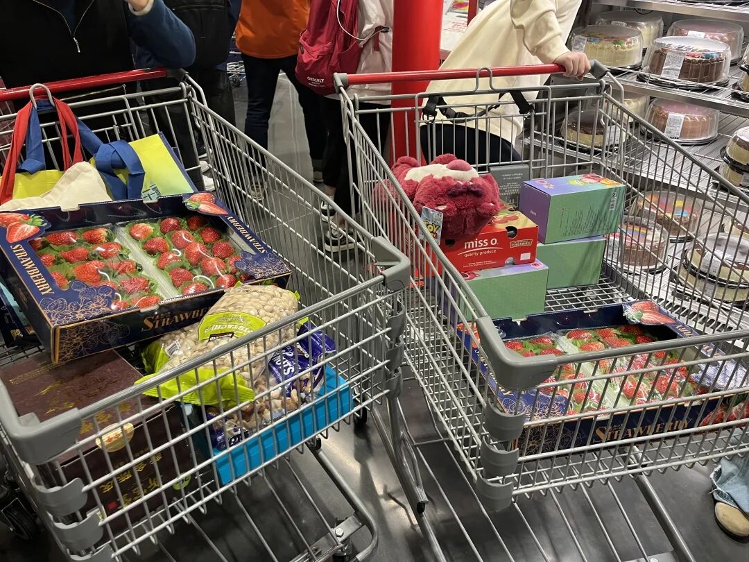 蔡友翔在山姆已经购物三年,在他看来,Costco与山姆同属于仓储会员店,店内的商品大同小异,但看到一些特价商品时还是很惊喜的:“比如红颜草莓、草莓熊等等,更重要的是这里比福田区的山姆更好停车。”此外,他现场尝试了Costco的熟食区,超大牛肉卷、鲜虾浓汤、披萨等食品“量大足料”、“很好吃”。