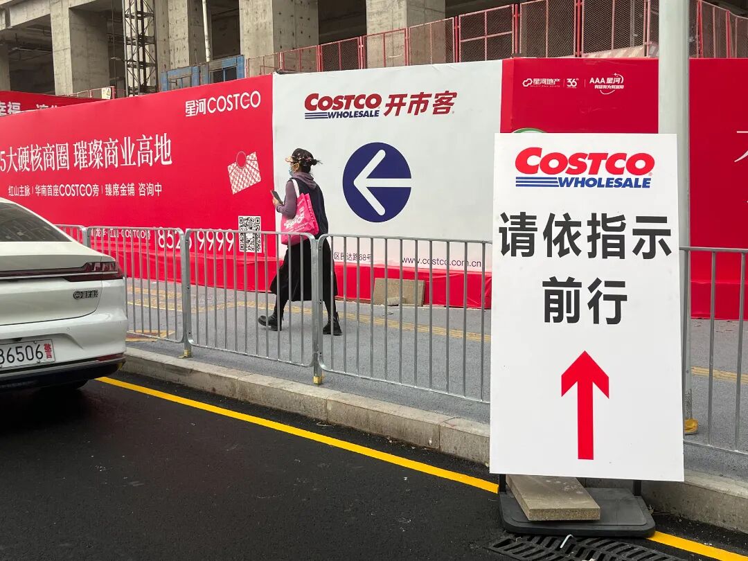 早上8时左右,龙华Costco开市客已迎来大量客流,福龙路、人民路等周边道路设置了标志指引,门口摆放了很多交通指示牌,各路口有交警在指挥交通。