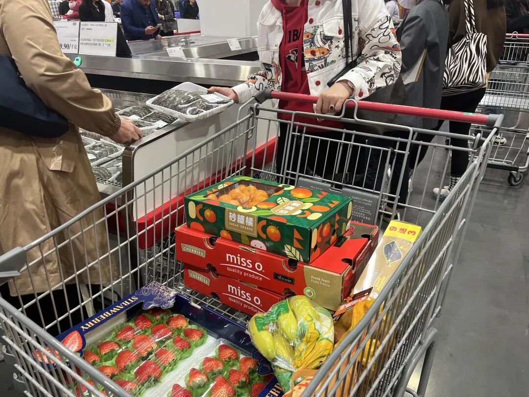 曾女士家住坂田,今天开业直奔生鲜产品,她表示,开市客开业,产品新鲜价格实惠,特意来囤货。