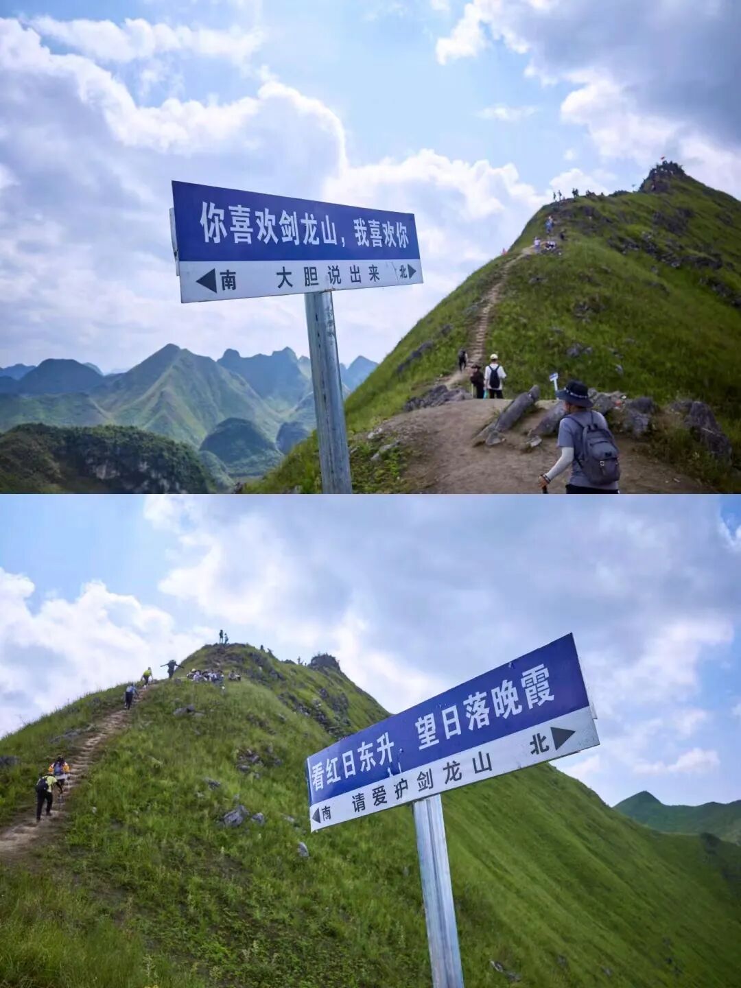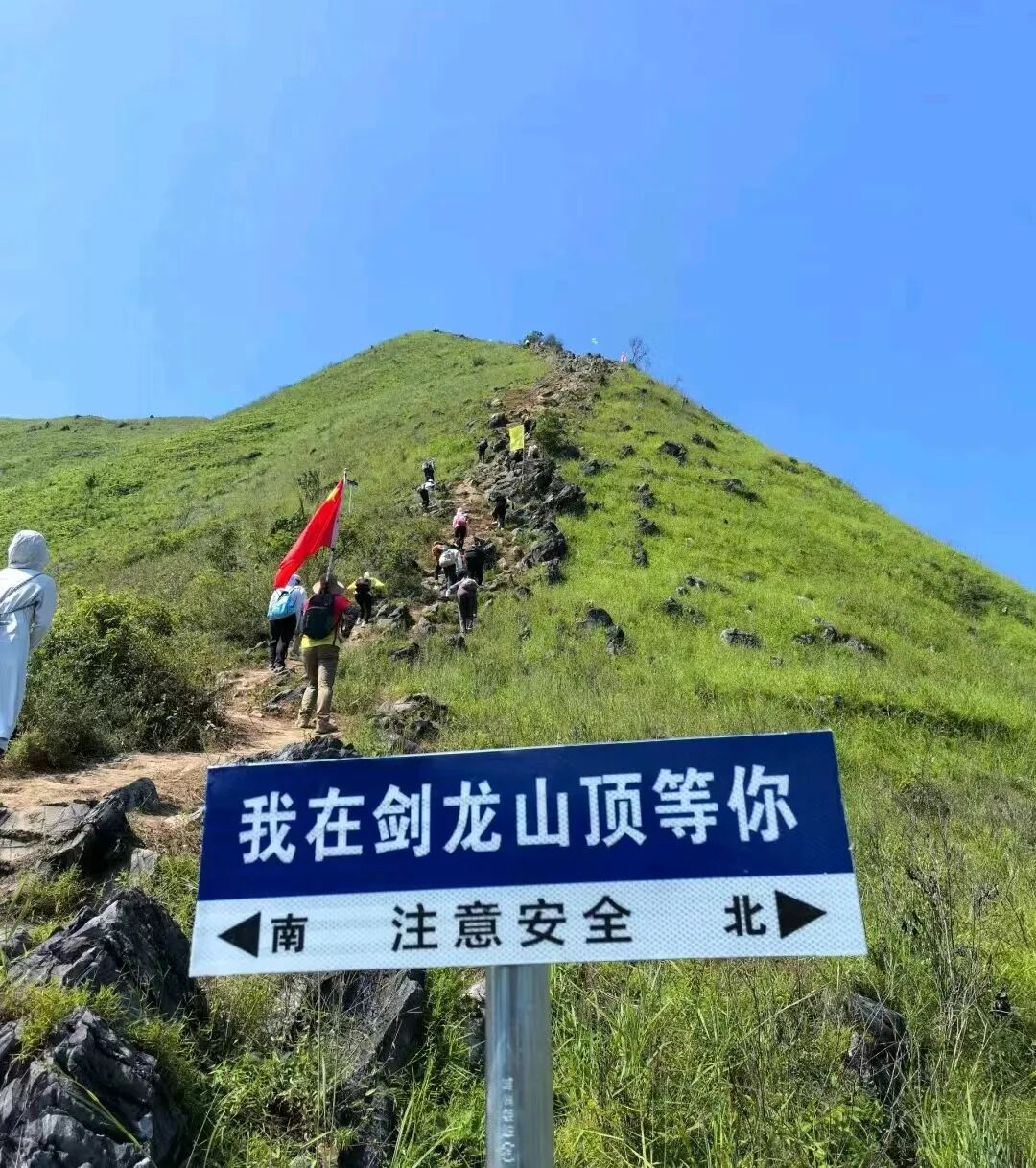 09:30 到达剑龙山脚,跟随领队徒步爬剑龙山环线约6.5公里,自备干粮解决午餐;